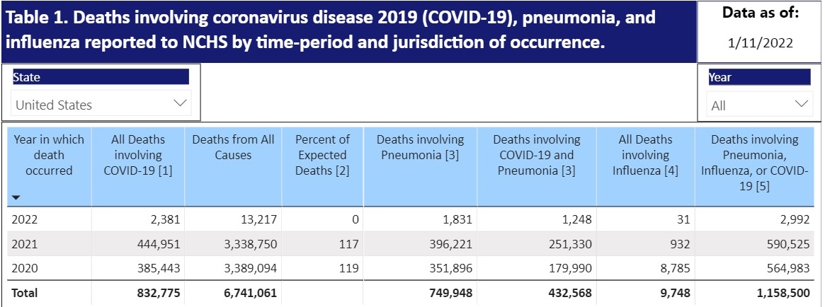 2021: COVID Deaths Increase, Flu Deaths Disappear, 400,000+ More Total Deaths than 2020