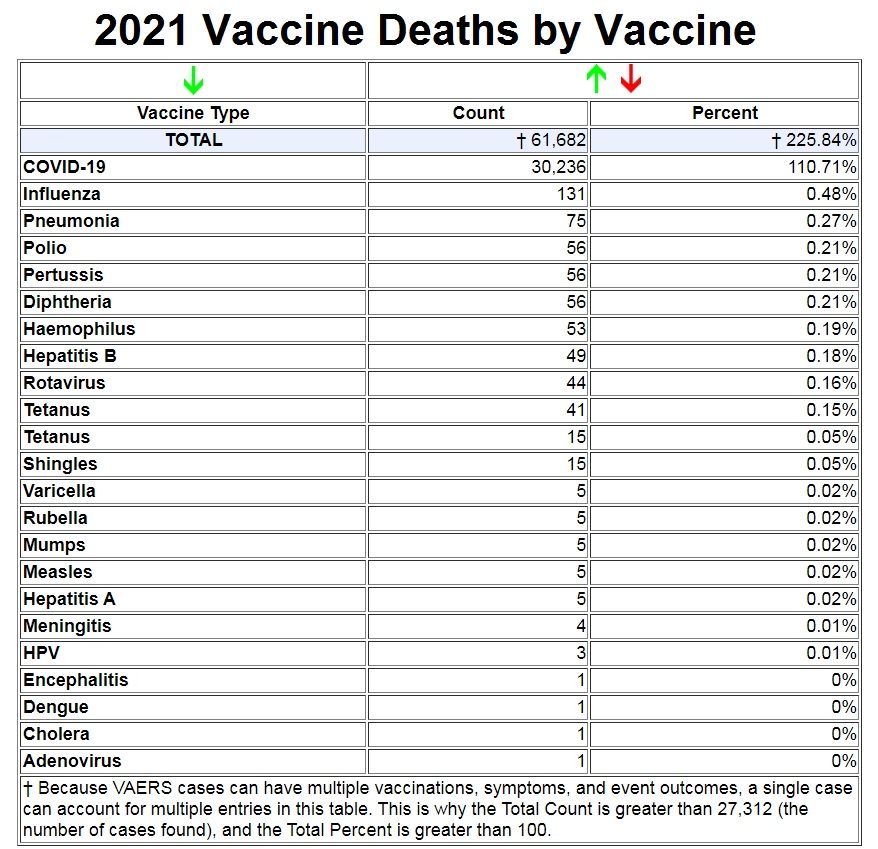 Official Government Data: Twice as Many Deaths Following COVID-19 Vaccines in 1 Year as Deaths Following All Vaccines for the Previous 30 Years