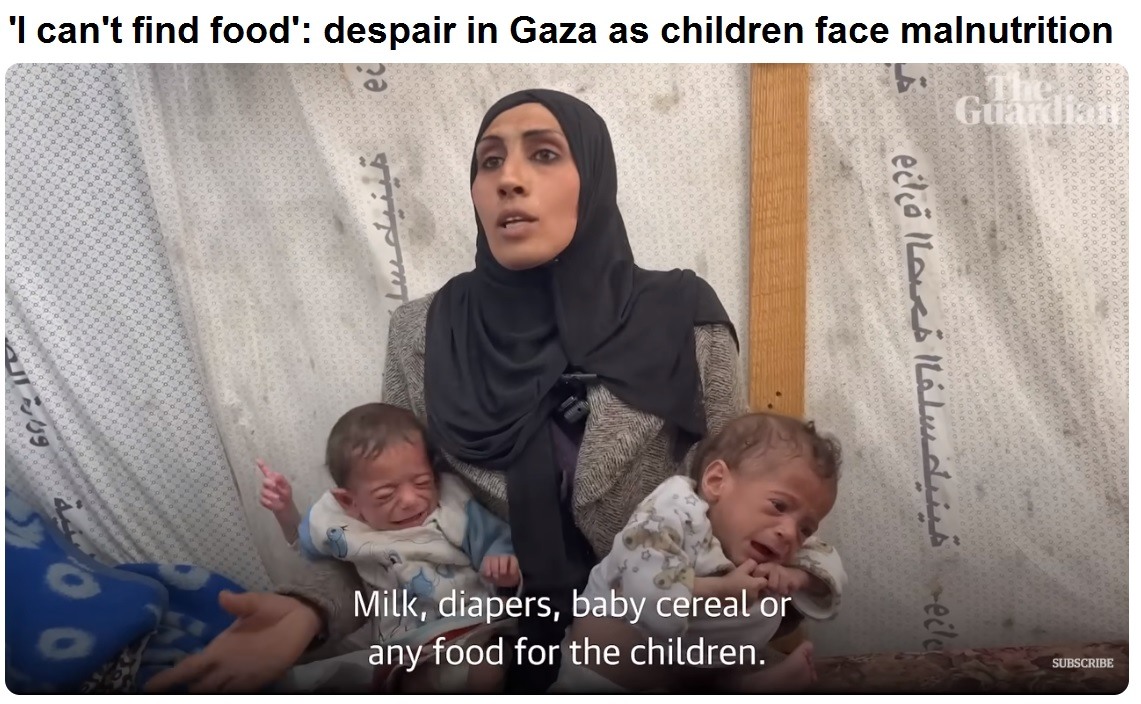 Also published yesterday was a report by The Guardian that according to the World Food Programme, malnutrition among children in Gaza is spreading at a record pace, with starvation claiming at least 27 young lives of children, and thousands more are at risk.