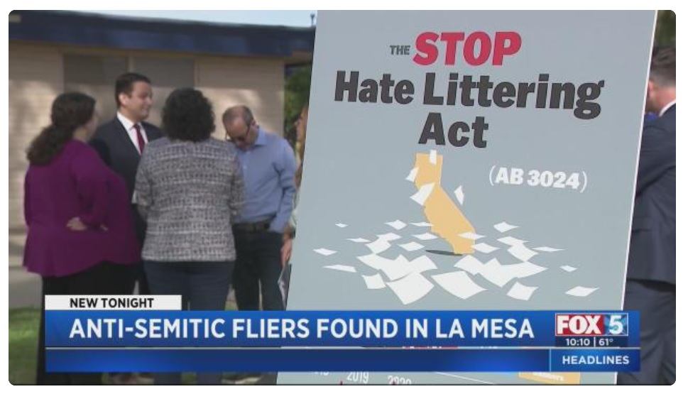 I recently watched a local news station in California report about how some neighborhoods in the community were being flooded with “antisemitic literature.”