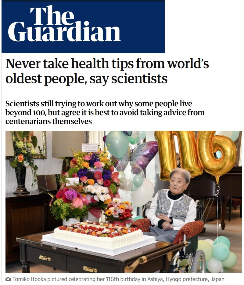 Sadly, Western culture has become so dumbed down, that probably 99% of the people who read this garbage that tries to pass as “journalism” on The Guardian will trust the “scientist”, and not Maria who lived to be the oldest woman in the world from her generation.